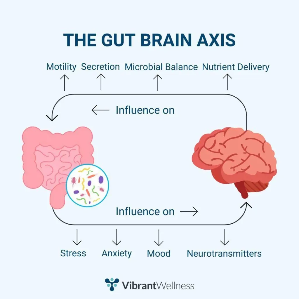 • Gut microbiota—the trillions of microbes that reside in the gut—synthesize and modulate the levels of several key neurotransmitters, including serotonin, dopamine, and GABA, all of which influence emotions, anxiety, and depression.