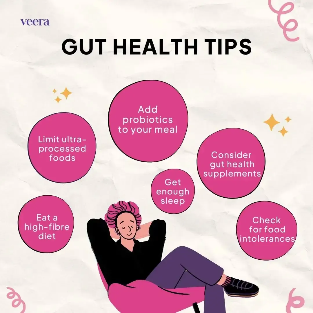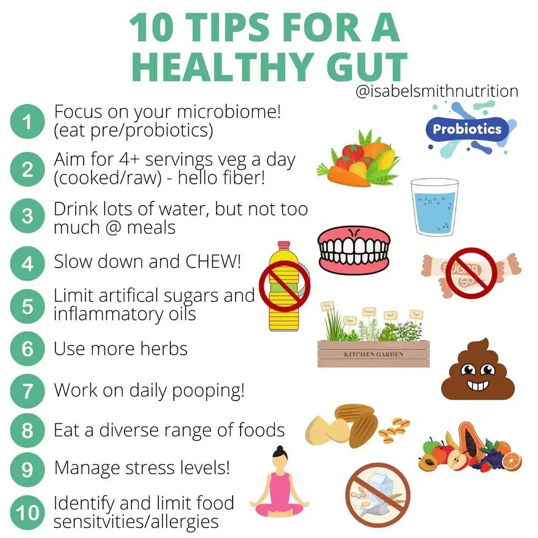 - It also means practicing stress-reducing activities like meditation, yoga, deep breathing exercises, or spending time outdoors to regulate the gut-brain axis (because chronic stress disrupts digestion and gut flora as well).
