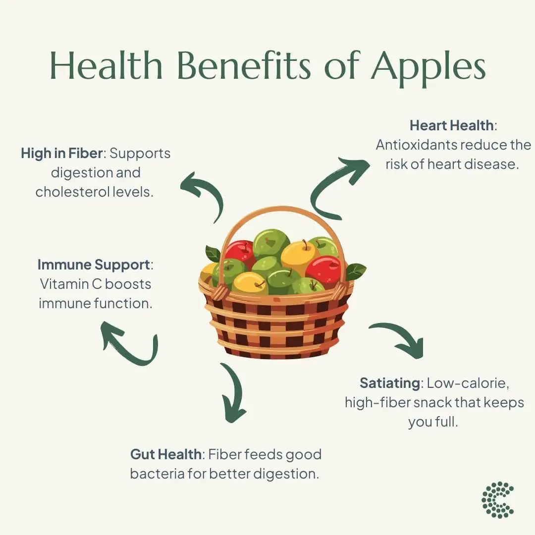 - Apples: contain pectin, a prebiotic fiber that feeds good bacteria.